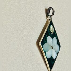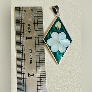 VTG Signed Mexico MOP Mother Of Pearl Alpaca Silver Enamel Inlay 1.75” Pendant
