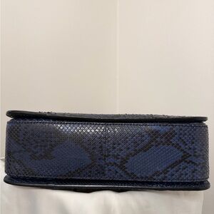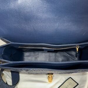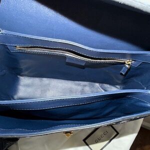Chic Gucci crossbody in navy python leather. Features gold-tone hardware. Includes adjustable strap for versatile wear.