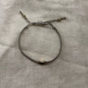 Stylish gray braided bracelet featuring gold accents. Perfect for any occasion.