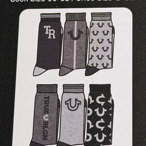 True Religion 6-Pack Crew Socks in blue and grey colors for shoe size 8-12.5 NWT
