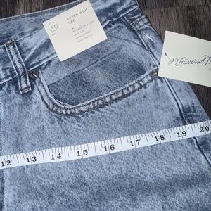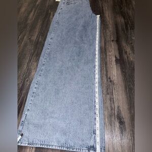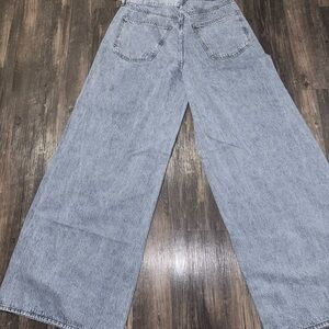 Stylish light blue jeans with a wide leg design. Perfect for casual wear. Comfortable and trendy.