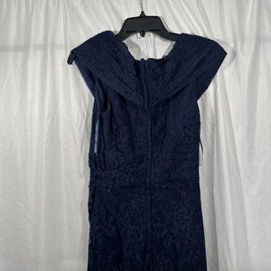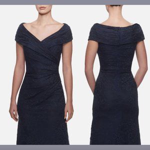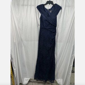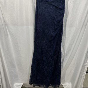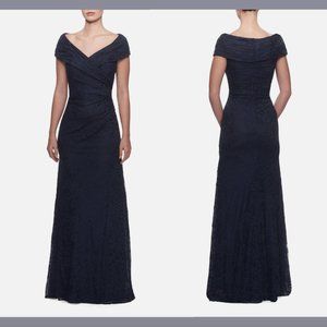 NEW $469 La Femme [ 6 ] Portrait Neck Sparkle Lace Gown in Navy Blue #Q387