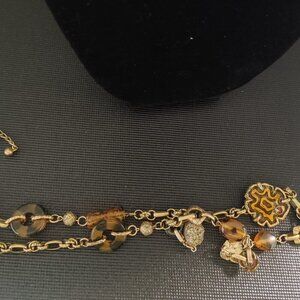 Chico's Gold Tone Amber Beads Statement Necklace 28"