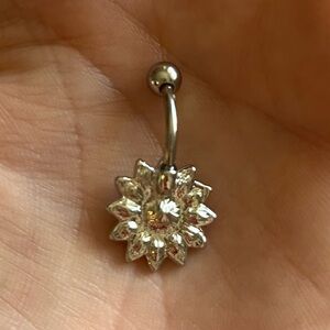 NWT 14G 316L Stainless Steal Flower Diamond Belly Button Ring - Hypoallergenic