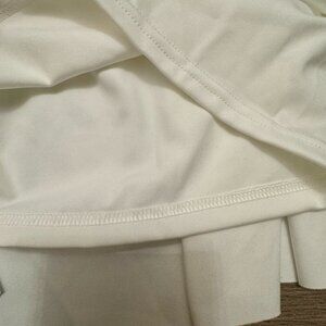 🤍 White flowy skort with a soft, structured drape that looks like a skirt from the front