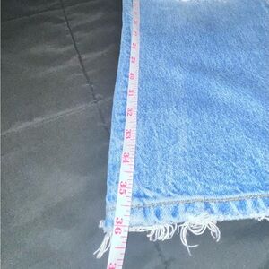 Trendy flare jeans with a wide-leg fit and distressed detailing at the knees. Made from classic blue denim. Purchased during a live sale, expecting them to fit, and they fit perfectly at the waist. Unfortunately, the length is much too short for me, sadly. I should have asked for the inseam. Otherwise in great condition. I know in the stock photo you can see that they are rise to be short, but it looks funny on me. Not unless you prefer. Do you have the measurements in my photos as you can see :)