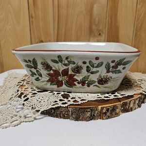 Longaberger Pottery Nature’s Garland Large Square Bowl Baker 9.5" Poinsettias