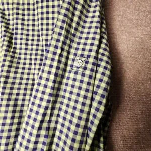 BUGATCHI UOMO Mens Gingham Check Long Sleeve Button Down Shirt Green Navy Blue
