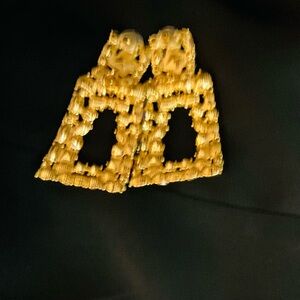 Add a splash of color to your ensemble with these vibrant gemstone earrings. Featuring a stunning mix of red, green, blue, and gold stones, these earrings are perfect for any occasion. Large 2.5 inches