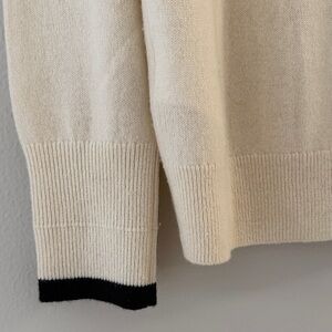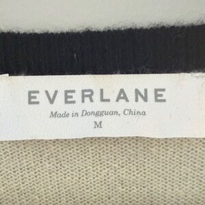 Everlane Cream Women Med Cashmere Crew Long Sleeve Sweater Black Ribbed Accents