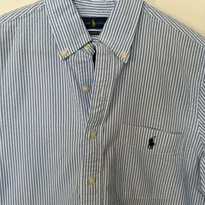 Ralph Lauren Men's Blue and White Striped Shirt