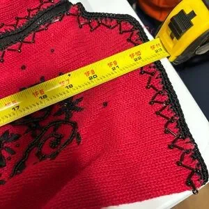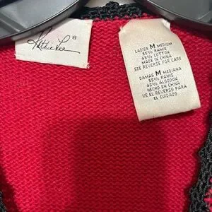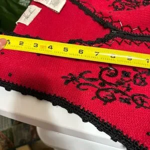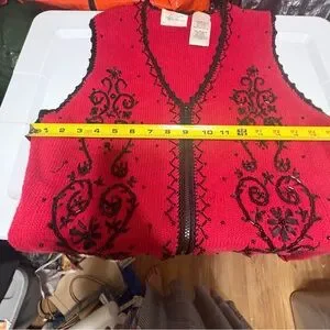 Vintage Kathie Lee zip up red knit sweater vest/w black beaded embroidery