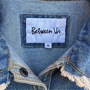 Cropped distressed blue denim jacket. Perfect for casual outings, it offers a trendy look with its unique design. It’s super cute fit!