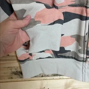Trendy Reflex hoodie with a multicolor camo pattern. Features a zip-up front.