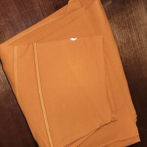 Stylish rust-colored leggings with a flattering flare. Ideal for yoga or casual wear.