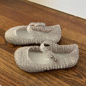 Charming Mini Melissa shoes with a glittery finish.