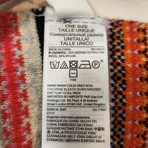 Stay cozy and stylish with this authentic GAP wool Fair Isle scarf. Featuring a vibrant multicolor knit design with shades of pink, red, navy, and beige, this scarf adds a pop of color to any winter outfit. Made from soft wool, it offers both warmth and comfort, perfect for layering over sweaters, coats, or casual wear. A versatile cold-weather accessory that combines classic Fair Isle patterns with modern style.