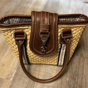Chaps Woven Leather Trim Metal Detail Shoulder Bag
