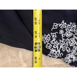 Democracy Women's XL Navy Blue Embroidered Sleeve Tie Front Tunic Top
