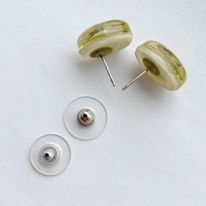 Tags: small petite earrings, floral, real dried flowers, epoxy, oval, stud, transparent plastic, minimalist, spring, summer, cute, capsule, vintage