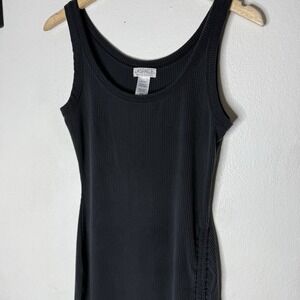 L Space Black Ribbed Side Slit Maxi Dress Cover Up Women's Medium Beach Boho