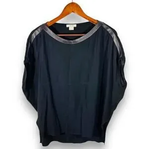 Helmut Lang Leather Trim Top Black Minimalist Designer Dolman Sleeve Size 4