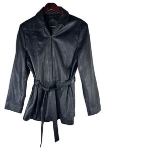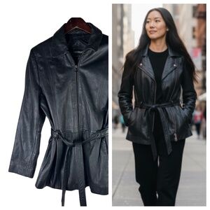 100% LEATHER Black Belted Zip Up
