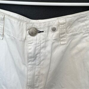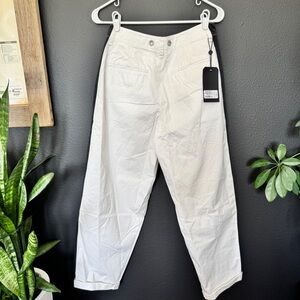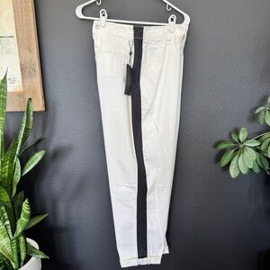 Chic pants with a bold side stripe. Ideal for a sleek, modern style. Color is a white cream with black stripe. Size 25 NWT