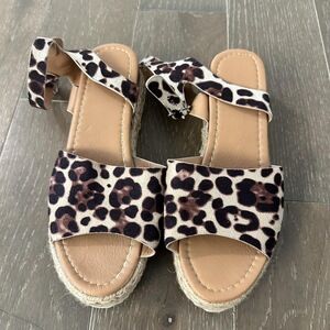 Cheetah espadrille chunky slingback low heel wedge sandals 8.5