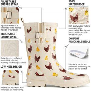Women's Cream Chicken Fashionable Waterproof Garden Mud Rubber Rain Boots