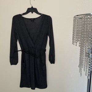 Delicious Los Angeles Long Sleeved Grey Dress with Elastic Waist & Pockets