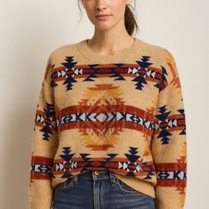 Lucky Brand Aztec Southwest Sweater Women’s Small Beige Multi