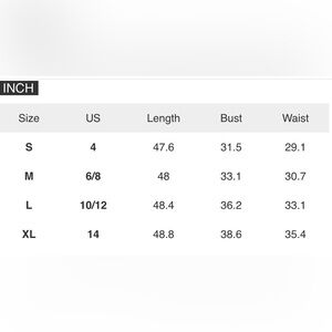 Small (SZ4) length 47.6, bust 31.5, waist 29.1 inches