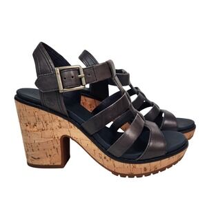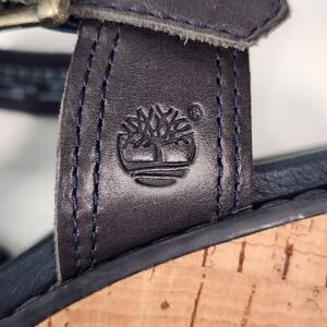 Keywords: Timberland sandals, cork heel, strappy sandals, leather sandals, buckle detail, ankle strap, platform sandals, summer shoes, anti fatigue, womens footwear, fashion sandals, evening wear, casual chic