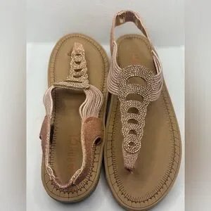 *NEVER WORN- Sandals with a shimmering rose gold finish. Perfect for adding a touch of glamour.