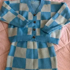 Elevate your wardrobe with this chic blue and cream checkered cardigan. Perfect for any occasion, it offers both style and comfort.