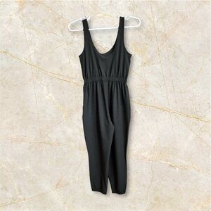 Good condition. Women’s Abercrombie & Fitch women’s sleeveless jumpsuit. Features a scoop neckline, elastic waist detail with exterior drawstring, side pockets and elastic at ankles.