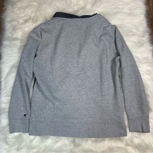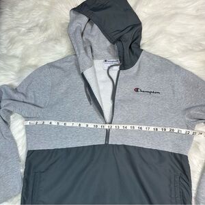 Champion~Men's~Fleece Woven-Mix Half Zip Two Tone Hoodie Heather Gray~Size Large