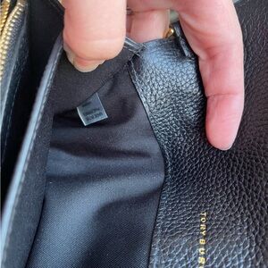 Tory Burch crossbody bag in black! It measures 5” in height and 8” in length. Super cute and in excellent condition!