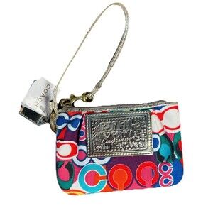 Coach Poppy Wristlet Signature C Multi Color Metallic Leather Y2K NWT