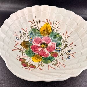 Vintage Italian Pottery Large Scalloped Edge Bowl Hand Painted Florals Italy