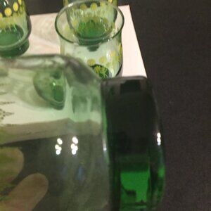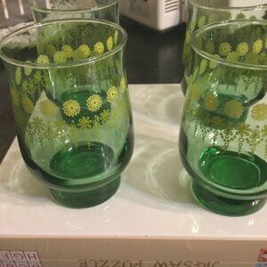 Vintage Dominion Green & Yellow Glasses Set of 4 Mid Century Retro Tumblers