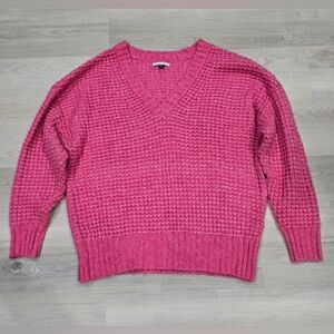 American Eagle Whoa So Cozy Waffle V-Neck Sweater Pink Oversized Small
