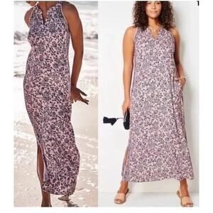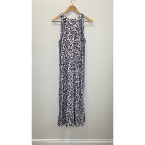 J Jill MP Island Breeze Blush Pink Blue Floral Maxi Dress Fairy Sleeveless Bloom
