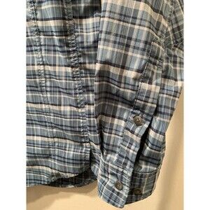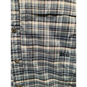 REI Co-Op Blue Plaid Outdoor Shirt is a versatile and practical piece of clothing designed for outdoor activities such as fishing, hunting, camping and boating. Made of a durable polyester/spandex, this shirt features a plaid Blue color , button pocket sleeves, 3 button pleated cuffs, and a button closure. The shirt includes various accents such as mesh lined vented back, vented armpits, re-enforced elbows, Logo, contrasting buttons, hat retainer loop and Velcro flap pockets. With a relaxed fit and lightweight fabric, this shirt is perfect for all seasons and offers comfort and breathability for a day out in nature or by the beach.