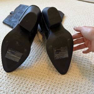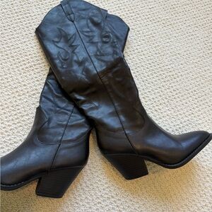 Step out in style with these chic black Western-style boots. Perfect for any occasion, these boots offer both comfort and elegance.