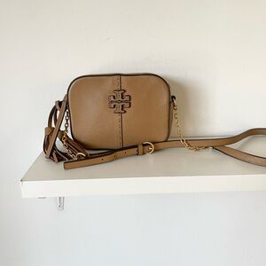 Tory Burch tassel crossbody bag in brown! It measures 5.75” in height and 7.75” in length. Super cute and in excellent condition!
