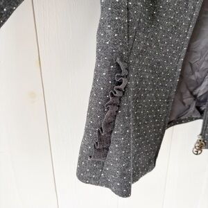Giorgio Armani Wool Blend Charcoal Polka Dots Ruffle Blazer Jacket Size 38