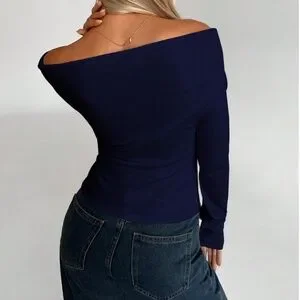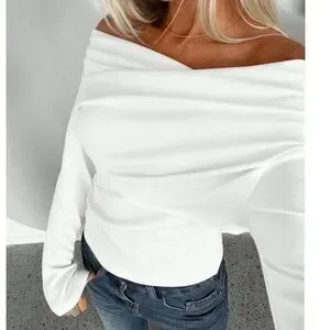 Solid Ruched Off Shoulder Fitted Long Sleeve Top