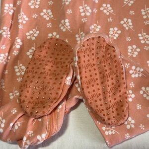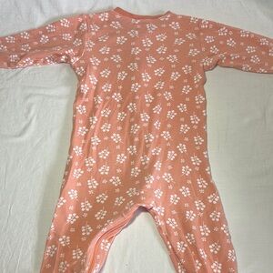 Charming peach baby onesie with a delicate floral pattern. Ideal for everyday comfort.